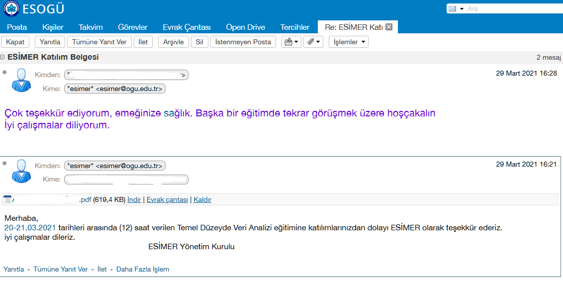 Temel Düzeyde Veri Analizi Online olarak verilen eğitimin Katılımcı Listesi